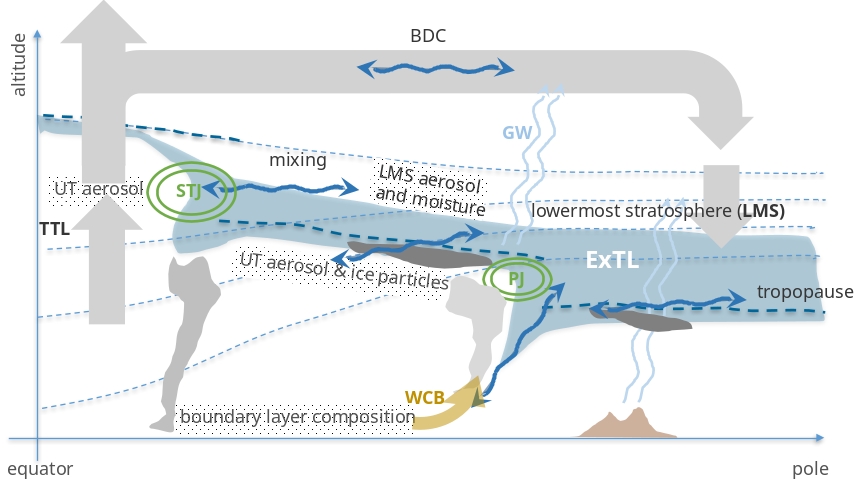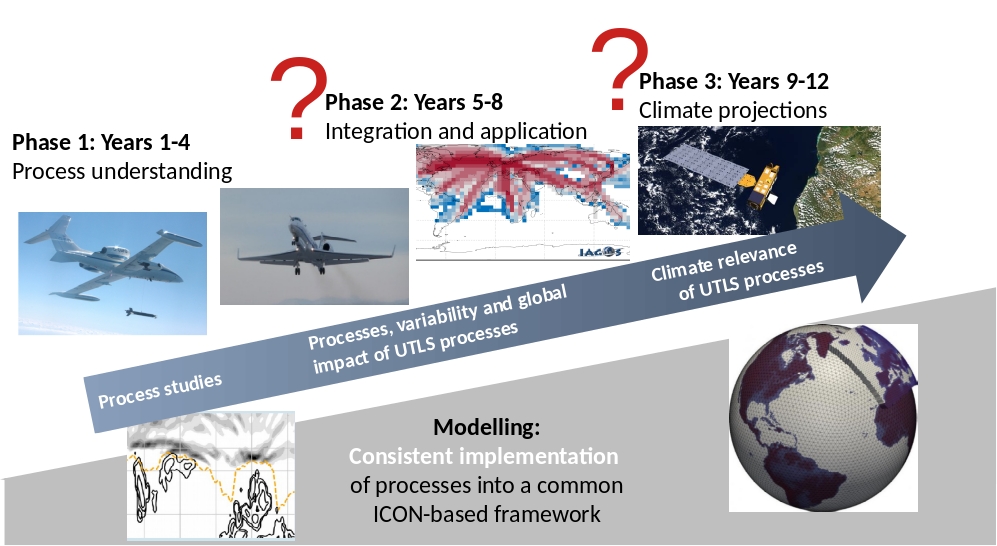 It is planned to combine process-oriented laboratory and in-situ observations and a hierarchy of model approaches across different science areas and research communities relevant for the UTLS. These areas encompass aerosol research, microphysics, gravity wave dynamics, turbulence and Rossby wave dynamics, as well as stratospheric circulation and transport research. This team allows addressing some of the most urgent questions of atmospheric research within a coordinated, collaborative and synergistic approach. We expect to make fundamental progress in process understanding of the tropopause region, its role for atmospheric composition, circulation, and climate variability. We will develop new model parameterisations of the relevant dynamical and microphysical processes affecting the UTLS composition. On the long-term we will include these new parameterisations into state-of-the-art climate models to study the impact of UTLS processes on climate-variability. This in turn is expected to contribute to the general challenge of better understanding present and future climate.
