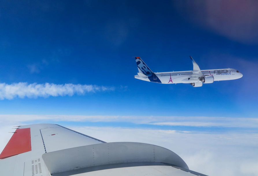 Photo of a contrail forming behind an aircraft (A321neo) with modern lean-burn LEAP-1A engines.
